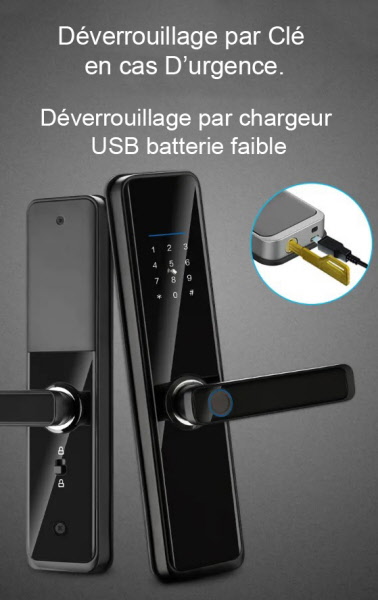 1. Mode de déverrouillage : APP, empreinte digitale, mot de passe, carte, clé, mot de passe temporaire.