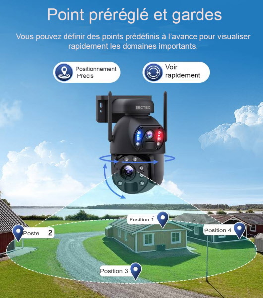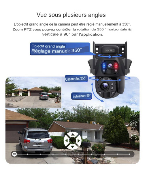 - 3. Caméra PTZ : 350 dans le sens horizontal et 90 dans le sens vertical
