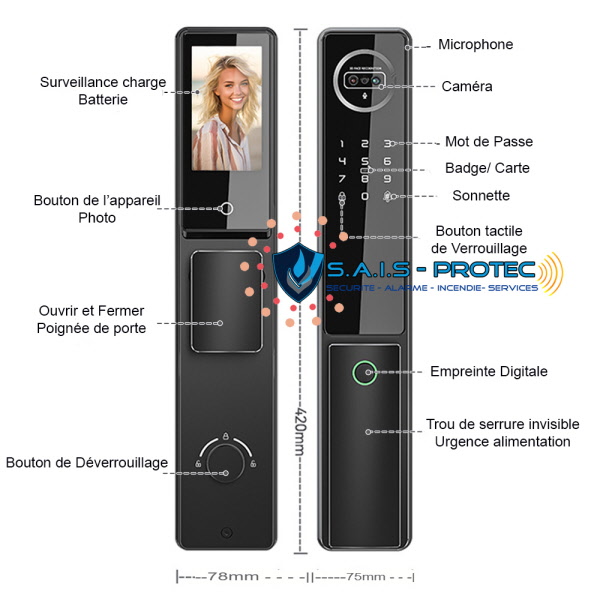 1. Mode de déverrouillage : empreinte digitale, mot de passe, carte magnétique, clé, mot de passe temporaire, application
