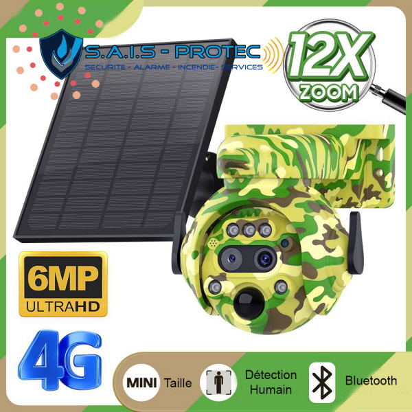 - Nom du produit : Caméra PTZ à batterie solaire avec zoom 12X et couleur camouflage :