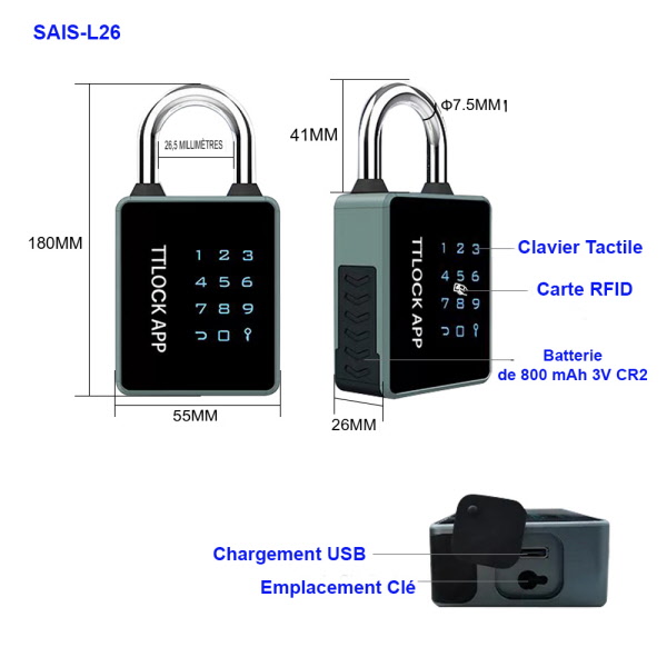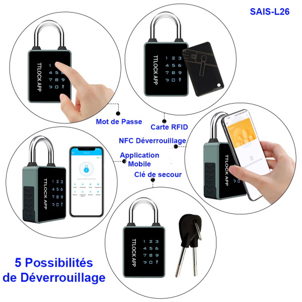 Mode de déverrouillage : APP/Mot de passe/Carte magnétique/Clé