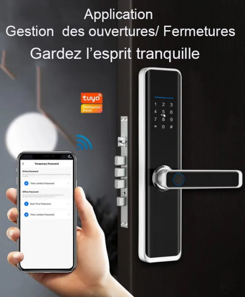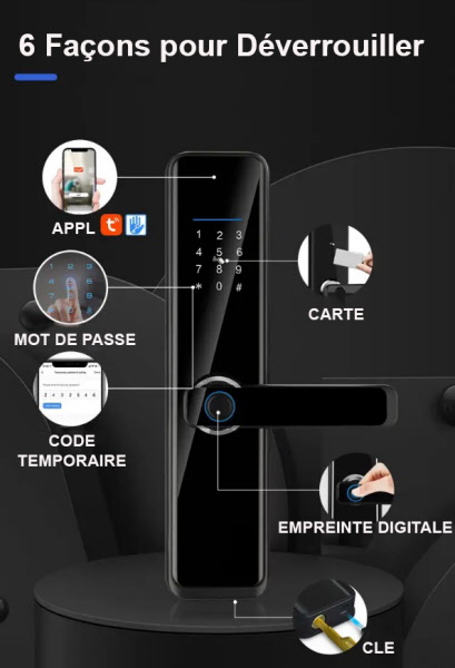 1. Mode de déverrouillage : APP, empreinte digitale, mot de passe, carte, clé, mot de passe temporaire.